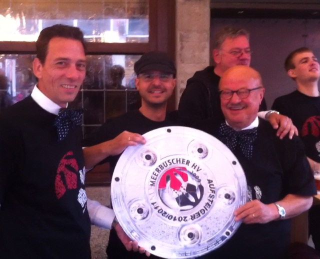 In der Düsseldorfer Altstadt bekam man sogar noch die Möglichkeit 2 Aufstiegsshirts zu übergeben und den Sponsoren mit einem HUMBA TÄTÄRÄÄÄ zu danken.
