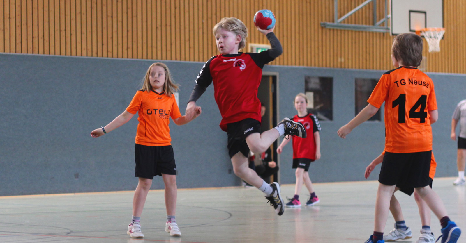 Vor fast „ausverkaufter“ Halle stand unsere E-Jugend mit genügend Auswechselspielern und einem hoch motivierten Trainer heute auf dem Platz. TG Neuss ging direkt am Anfang in Führung. Anders als andere E-Jugend Mannschaften spielte TG in einer rein defensiven Deckung, was unser Kids bis dahin noch nicht kannten, da in der E-Jugend reine Manndeckung vorgegeben ist. Wir mussten uns also erst auf das neue Spielsystem einstellen und das macht die Mannschaft sehr gut. Wir kämpften uns ins Spiel, hatten auch schon gute Ansätze in Manndeckung, allerdings gab es gelegentlich noch Defizite in der Abwehr. Durch die Defensivdeckung der Neusser kam es zu häufigen Abschlüssen aus dem Rückraum, welche oft in den Händen des gegnerischen Torhüters. In der zweiten Halbzeit gab es bei uns einen Torwartwechsel und die Manndeckung wurde vernachlässigt. Wir haben unseren Vorsprung verwaltet, der Sieg war zu keinem Zeitpunkt gefährdet.