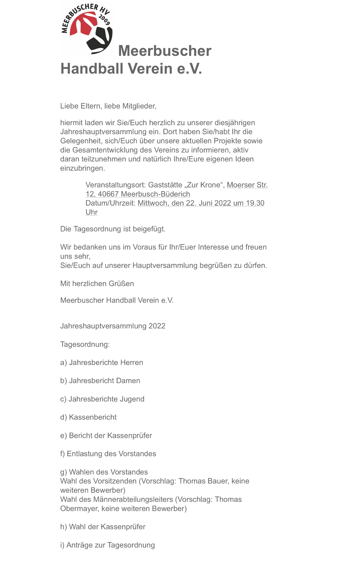 Sie/Euch auf unserer Hauptversammlung begrüßen zu dürfen.