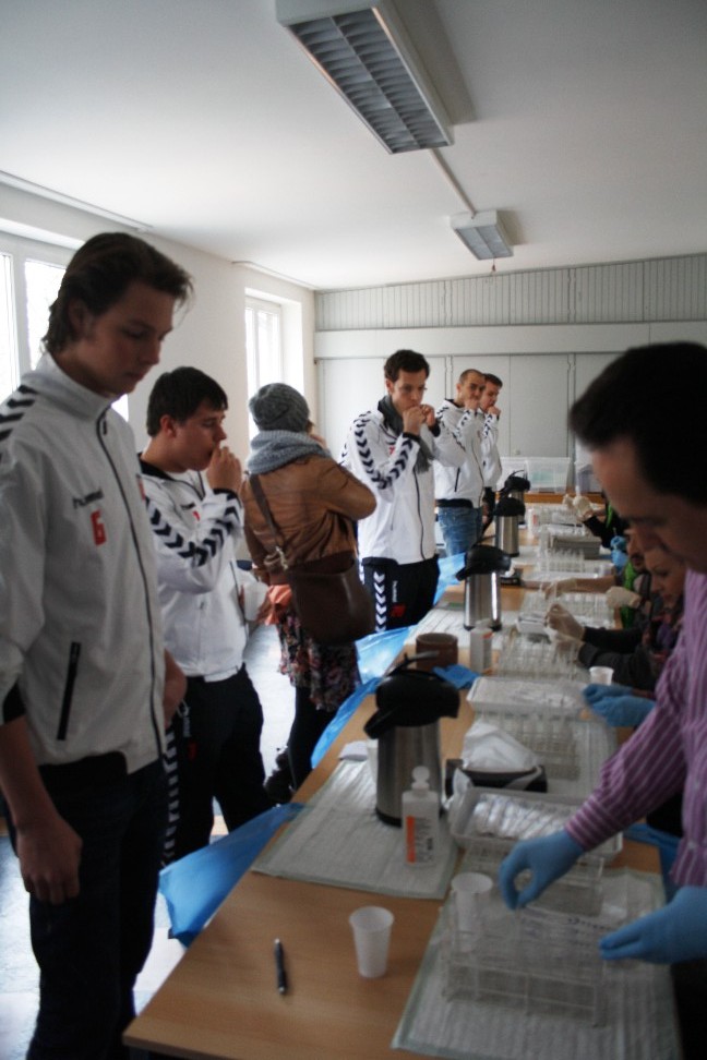 So trafen sich am 26.03.2011 mehr als 15 Mitglieder des MEERBUSCHER HV vor ihrem Auswärtsspiel gegen Erkrath am Pfarrzentrum Mauritius um an der der Typisierungsaktion der St. Sebastianus-Schützenbruderschaft Büderich e.V. in Zusammenarbeit mit der Knochenmarkspenderzentrale der Universität Düsseldorf teilzunehmen.
