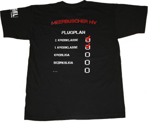 Die Aufstiegsshirts des MHV spicken dieses Jahr eine Flugroute auf dem Rücken.