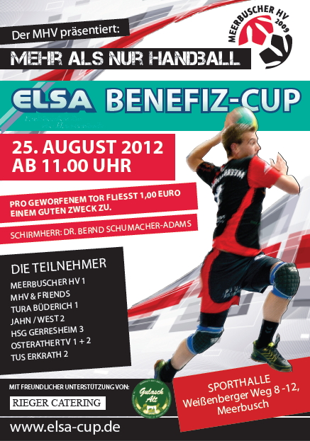 schön dass Sie sich für unseren ELSA BENEFIZ-CUP 2012 interessieren. Der ELSA BENEFIZ-CUP 2012 ist nicht einfach nur ein Handballturnier, sondern er steht für das Motto „Mehr als nur Hanbdball!